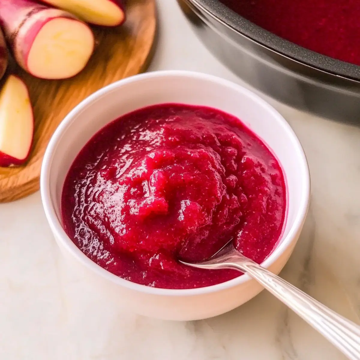 While the ingredients in Strawberry Beet Instant Pot Applesauce are safe for dogs in small amounts, remember that beets can be high in sugar. It’s best to offer only a small spoonful to your furry friend and consult with your veterinarian for any dietary concerns.