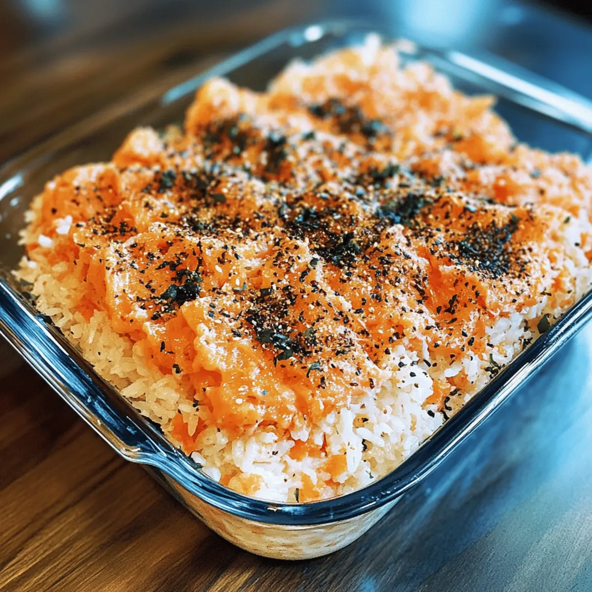 Begin by rinsing 1 cup of sushi rice under cold water until the water runs clear, then cook it according to package instructions. Once cooked, fluff the rice and gently fold in the sushi seasoning until properly mixed. The rice should be glossy and slightly sticky, perfect for creating the base of your Tuna & Creamy Crab Sushi Bake.